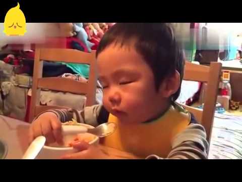 Bé vừa ăn vừa ngủ gật cực cute